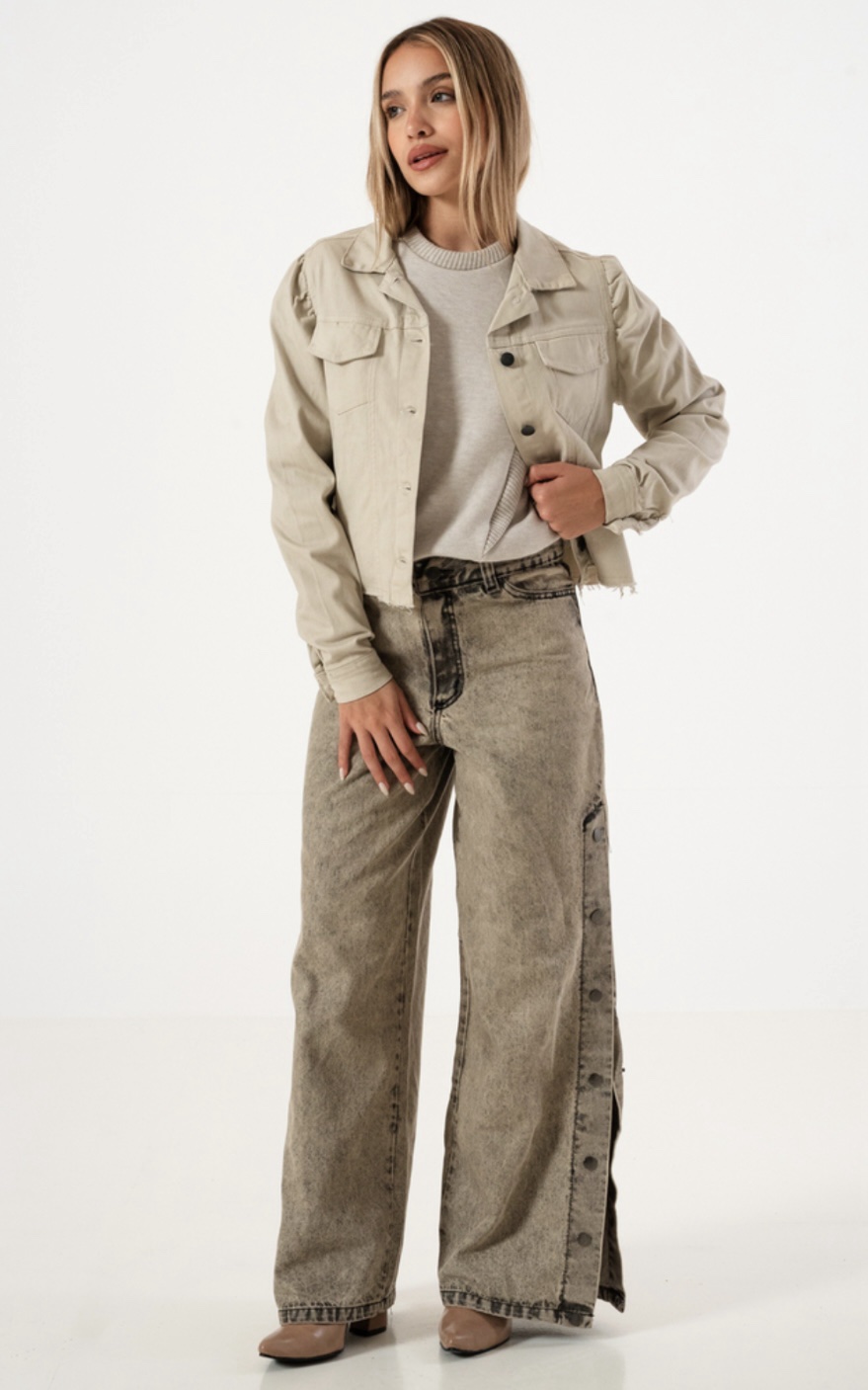 Campera con botones bolsillos ambas parte superior y costados.